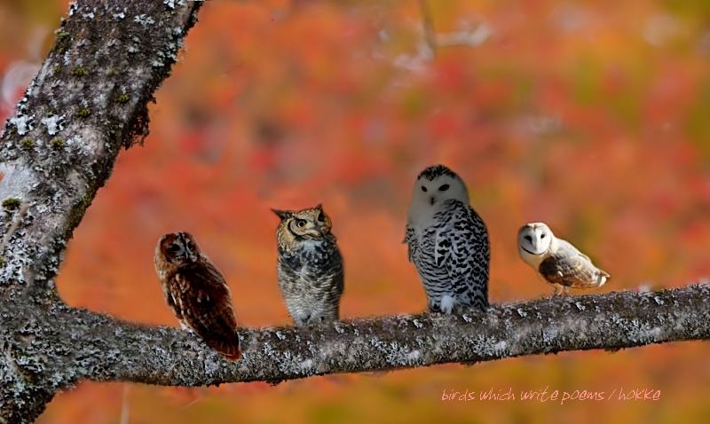 モリフクロウ・ワシミミズク・シロフクロウ・メンフクロウ