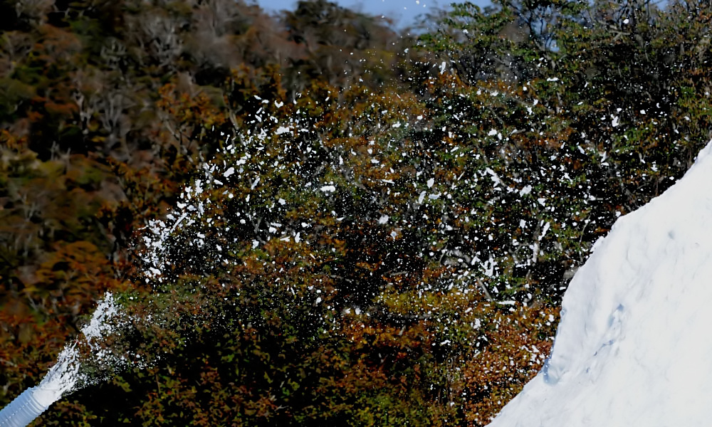 谷から水をポンプアップしていまから雪(氷)を作り