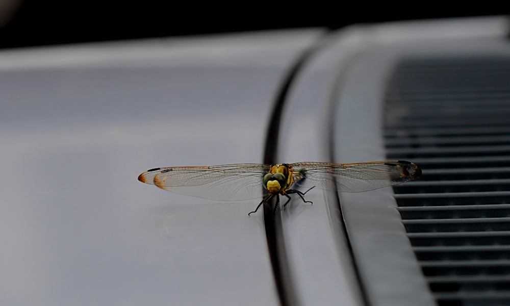 車に蜻蛉がとまってくれた
