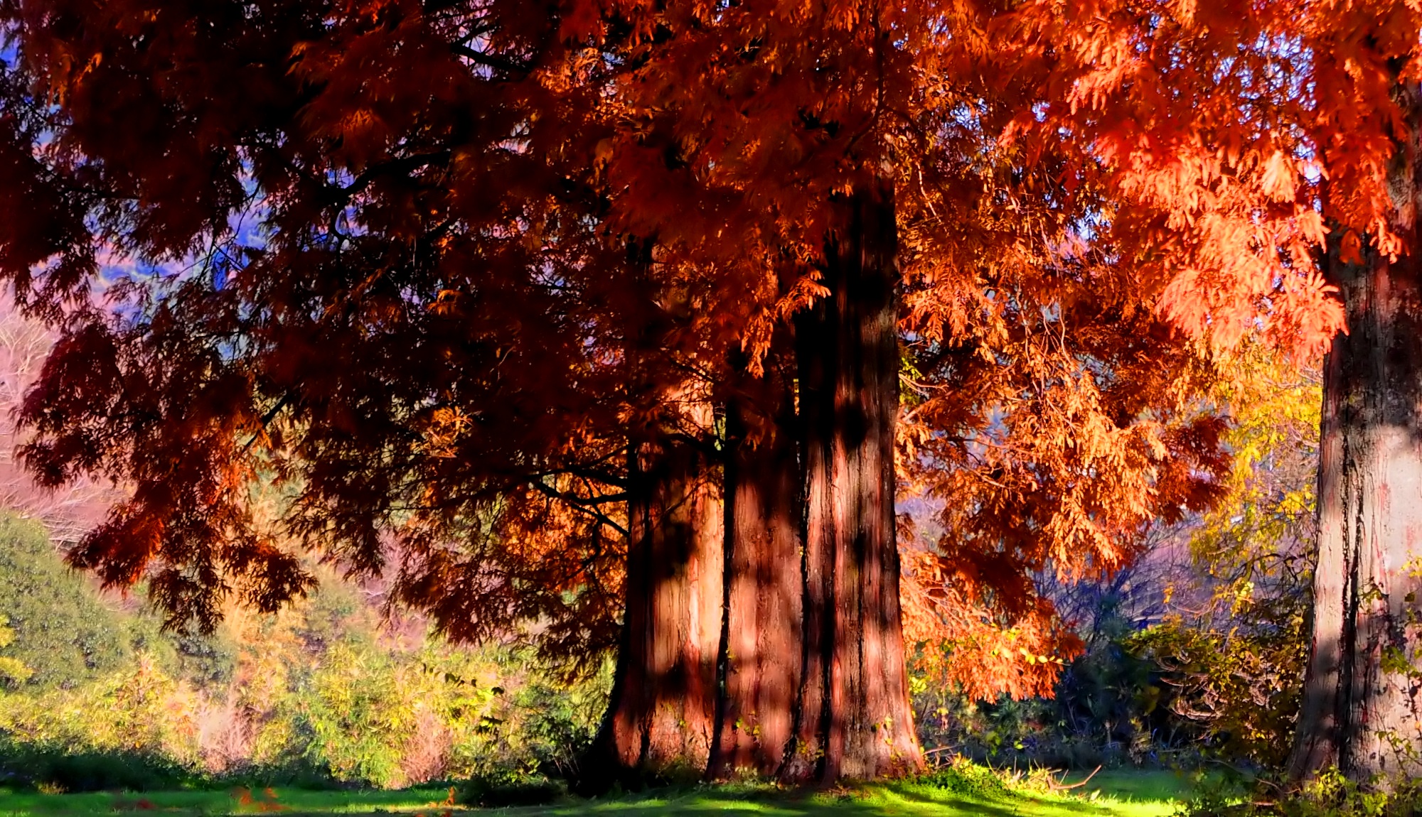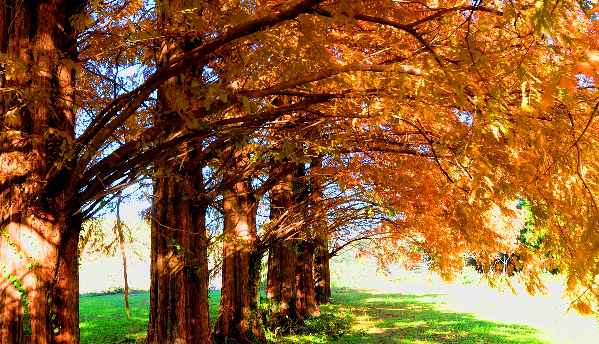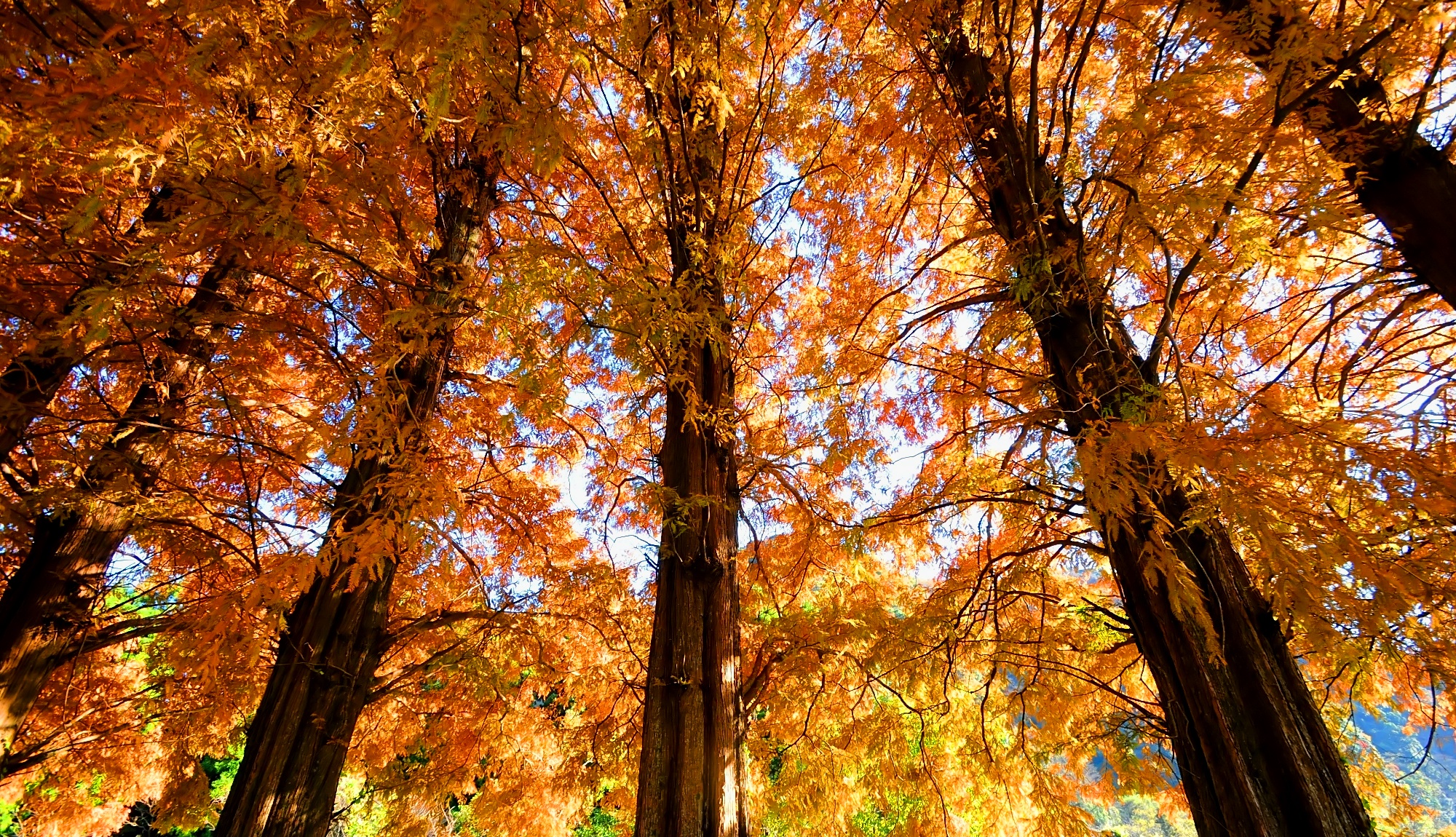 このメタセコイアはまだ紅葉が進み